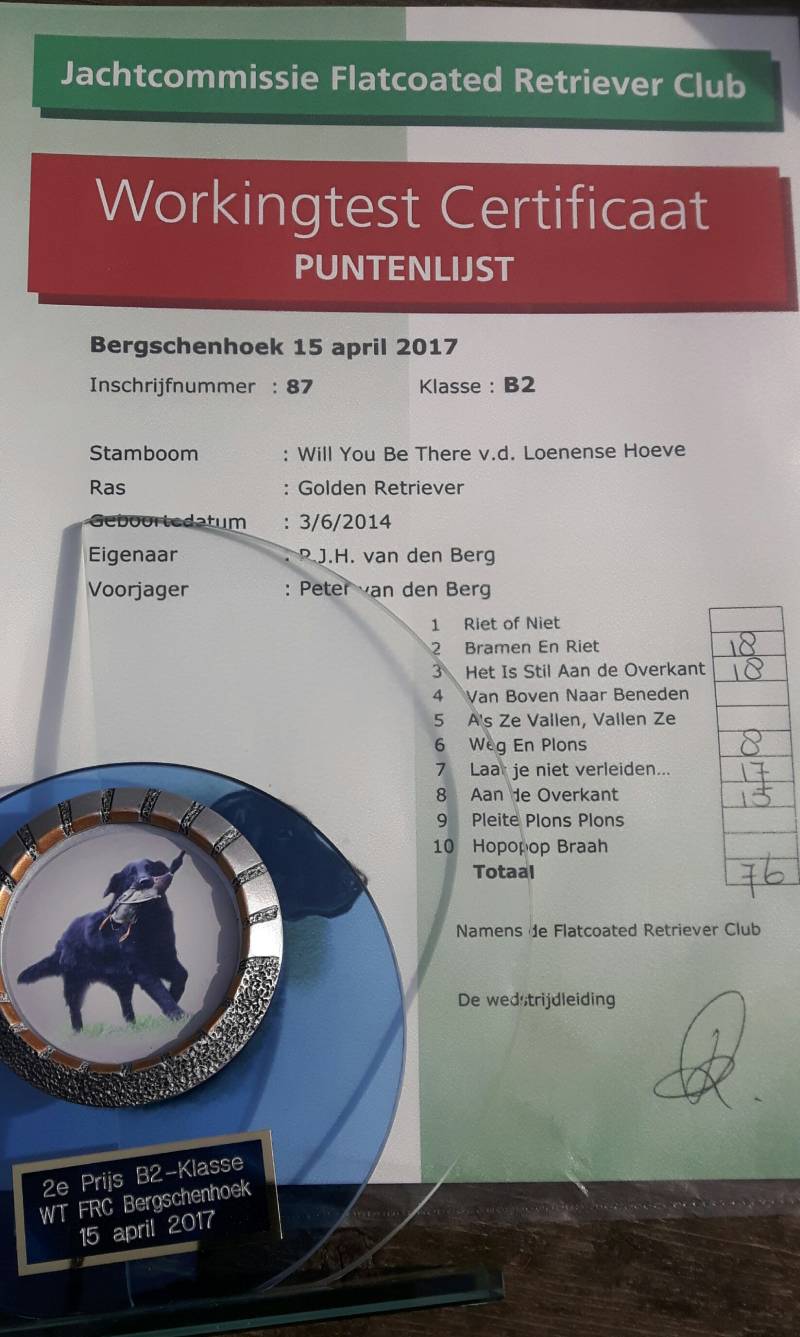 B2 Workingtest FRC 15-04-2017 Bergschenhoek. 76 punten 2e plaats